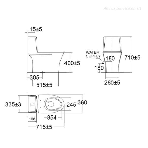 • Rough-In : แบบท่อลงพื้น S-Trap 305 mm.
