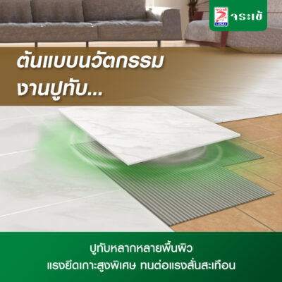 มีผงลาเท็กซ์ที่เพิ่มประสิทธิภาพของกาวซีเมนต์ให้ดีขึ้น มีส่วนผสมของปูนซีเมนต์ปอร์ตแลนด์ ทราย และเคมีผสมเพิ่มชนิดพิเศษอื่น ๆ ทำให้ผลิตภัณฑ์มีคุณสมบัติที่ให้การยึดเกาะสูง มีการยึดหยุ่นที่ดี ทนทานในทุกสภาพภูมิอากาศ เหมาะสำหรับใช้ปูภายนอกอาคารโดยเฉพาะ ใช้ปูกระเบื้องเซรามิกทุกชนิด ปูหินอ่อน ปูแกรนิต ปูโมเสกแก้ว กระเบื้องแก้ว และใช้ปูทับกระเบื้องเดิมโดยไม่ต้องสกัดของเก่า ทั้งพื้นและผนังภายใน รวมทั้งสามารถใช้ปูบนพื้นผิวไม้อัดโครงสร้าง แผ่นไฟเบอร์ซีเมนต์